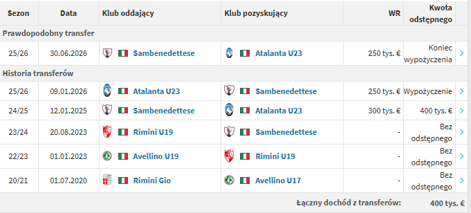 Edoardo Lonardo opuszcza Atalantę na zasadzie wypożyczenia do Sambenedettese. Umowa została sformalizowana jako wypożyczenie do 30 czerwca 2026. Założenie jest proste: regularna gra w konkurencyjnych rozgrywkach i budowanie doświadczenia, którego nie da się zastąpić treningiem.