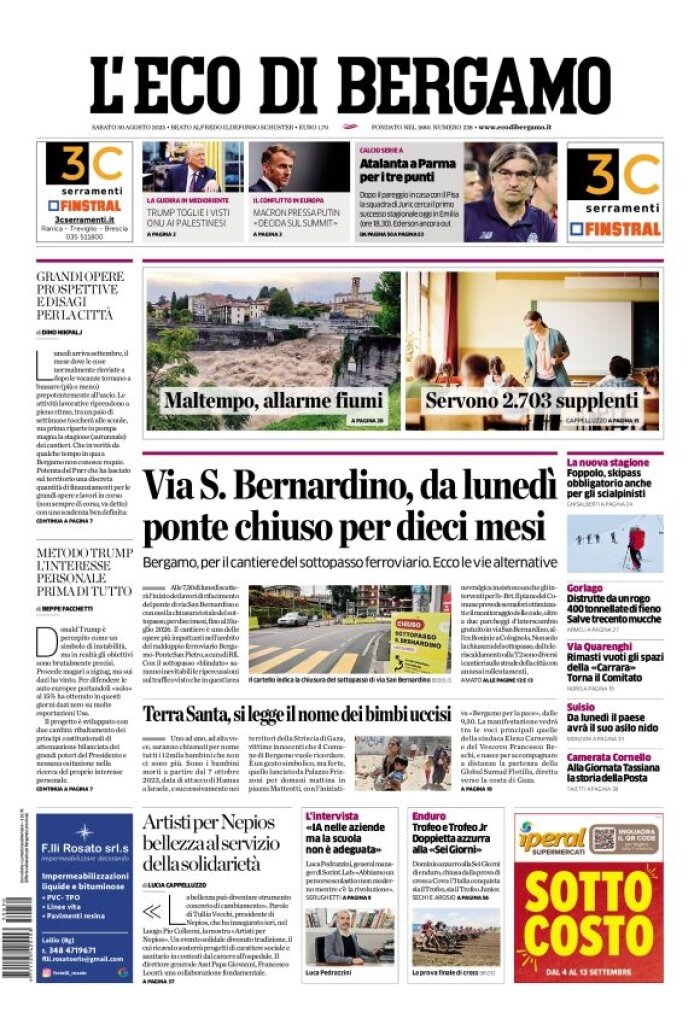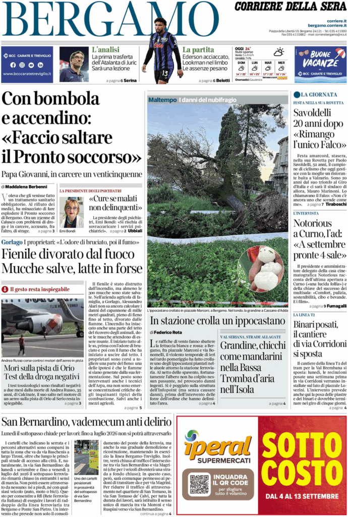 W sporcie akcent pada na wyjazd Atalanty do Parmy i potrzebę pierwszej wygranej ery Juricia. Reszta to głównie lokalne wydarzenia.