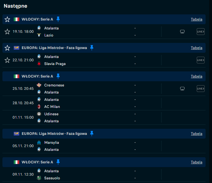 Atalanta wraca do gry po przerwie reprezentacyjnej i natychmiast wchodzi w najbardziej intensywny fragment rundy jesiennej. Siedem meczów w 21 dni, w trzech rozgrywkach, wymusza na Ivanie Juriciu pełne wykorzystanie kadry. Trener Dea może jednak liczyć na coś, czego brakowało jeszcze miesiąc temu: realny wybór.