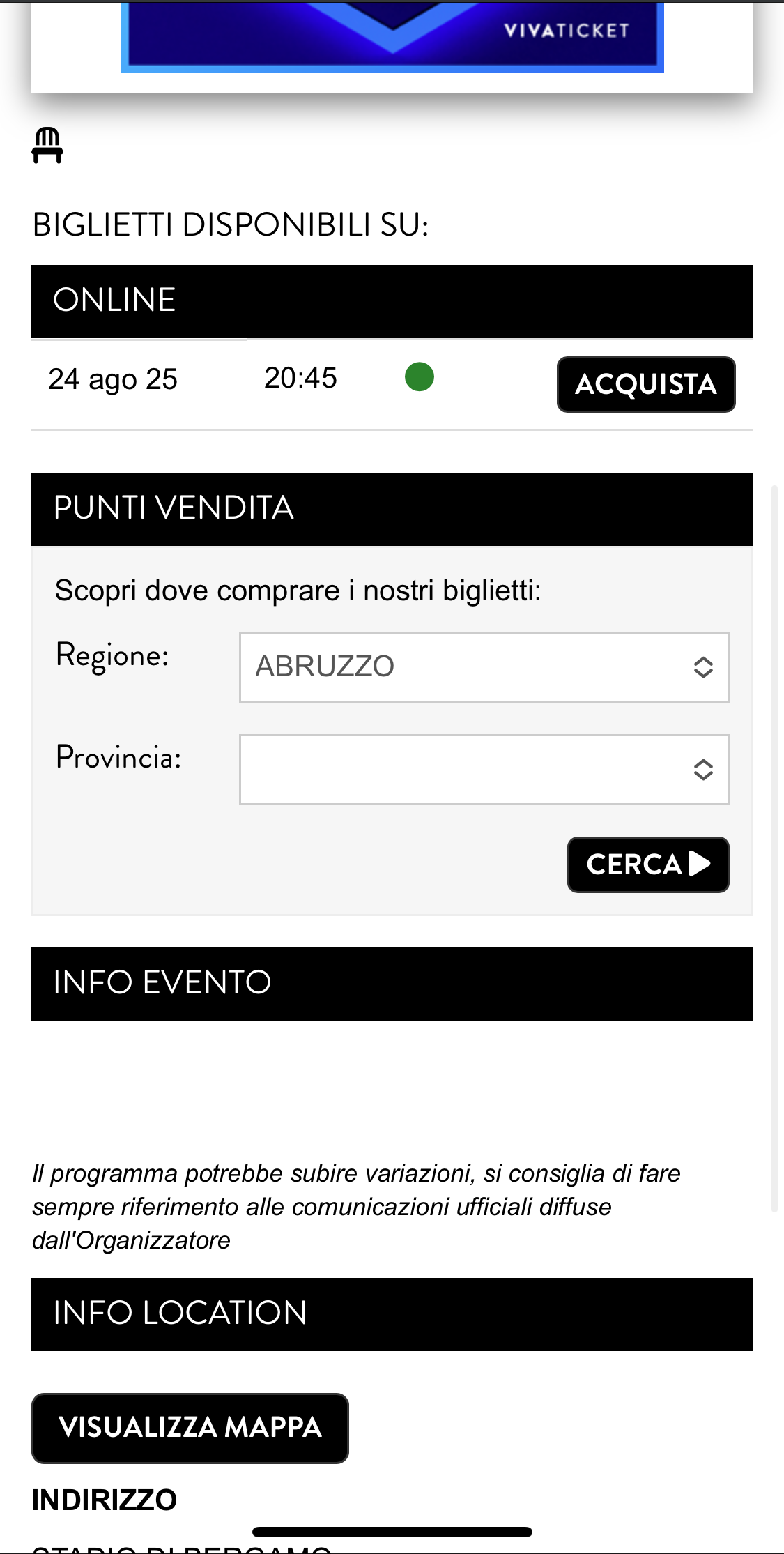 „Punkty Vivaticket” odnoszą się do fizycznych punktów sprzedaży biletów zarządzanych przez Vivaticket, które można znaleźć za pomocą strony ricercapv. Z kolei klubowe miejsce, gdzie możemy nabyć fizyczne bilety to tylko kasy, które są otwarte zazwyczaj kilka godzin przed meczem (detale zawsze podawane są w szczegółach danego wydarzenia).