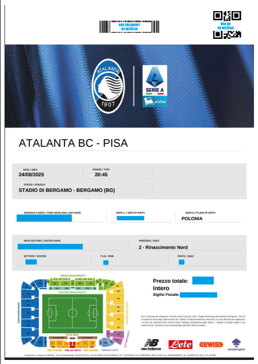 - Kasa stadionu Gewiss Stadium: Bilety dostępne w dniu meczu, ale oficjalna strona zachęca do wcześniejszego zakupu, aby uniknąć kolejek, zwłaszcza ze względu na procedury rejestracji biletów.